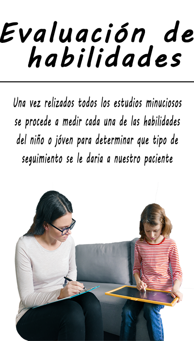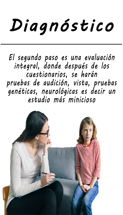 Realizamos una entrevista y la observación del niño o adolescente, donde se confirma o se descarta la presencia de síntomas relacionados con la Condición del espectro autista y se proporcionan sugerencias de atención o seguimientos según el caso
